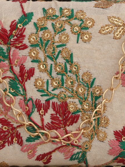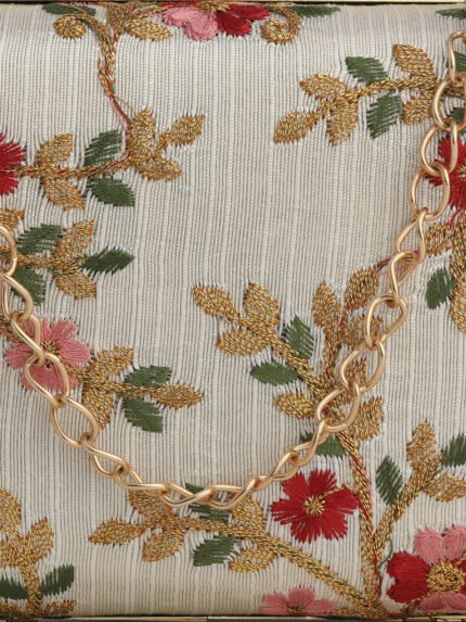 Combo Of Boho Bag And White & Gold-Toned Embroidered Party Box Clutch For Girls and Womens For Girls and womens