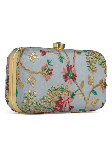 Combo Of Boho Bag And Blue & Gold Embroidered Box Clutches For Girls and womens