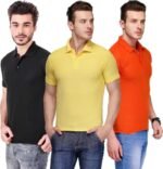 Men’s Polo Neck Short Sleeve Casual Tshirt Combo of Black, Orange, Yellow colors (Pack of 3)