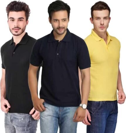 Men's Polo Neck Short Sleeve Casual Tshirt Combo of Dark Blue, Red, Yellow colors (Pack of 3) Original price was: ₹1,299.00.Current price is: ₹439.00.
