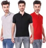 Men’s Polo Neck Short Sleeve Casual Tshirt Combo of Red, Black, Grey colors (Pack of 3)