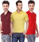 Men’s Polo Neck Short Sleeve Casual Tshirt Combo of Red, Maroon, Yellow colors (Pack of 3)