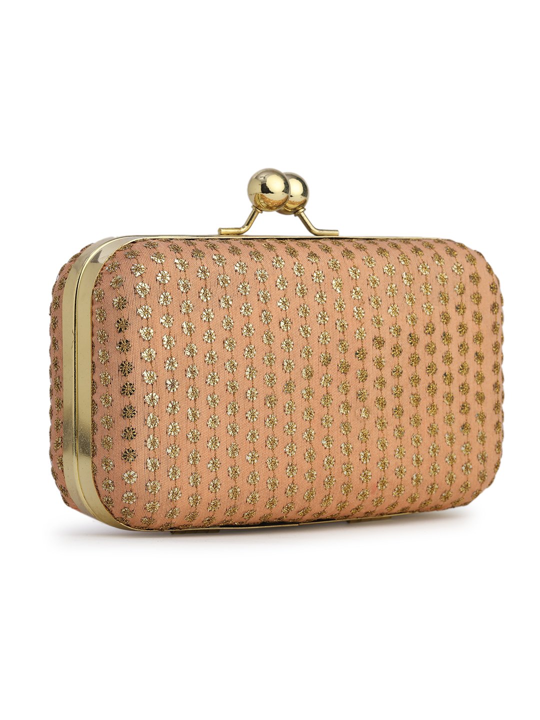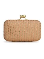 Peach & Gold Embroidered Box Clutches For Girls and womens
