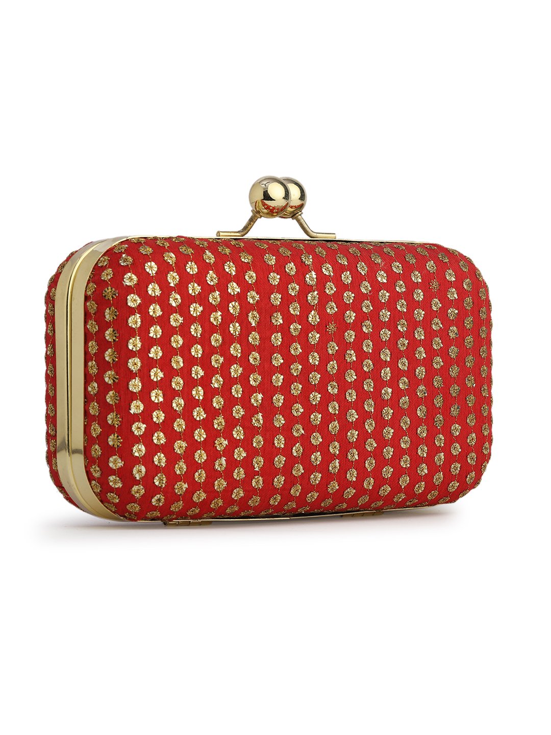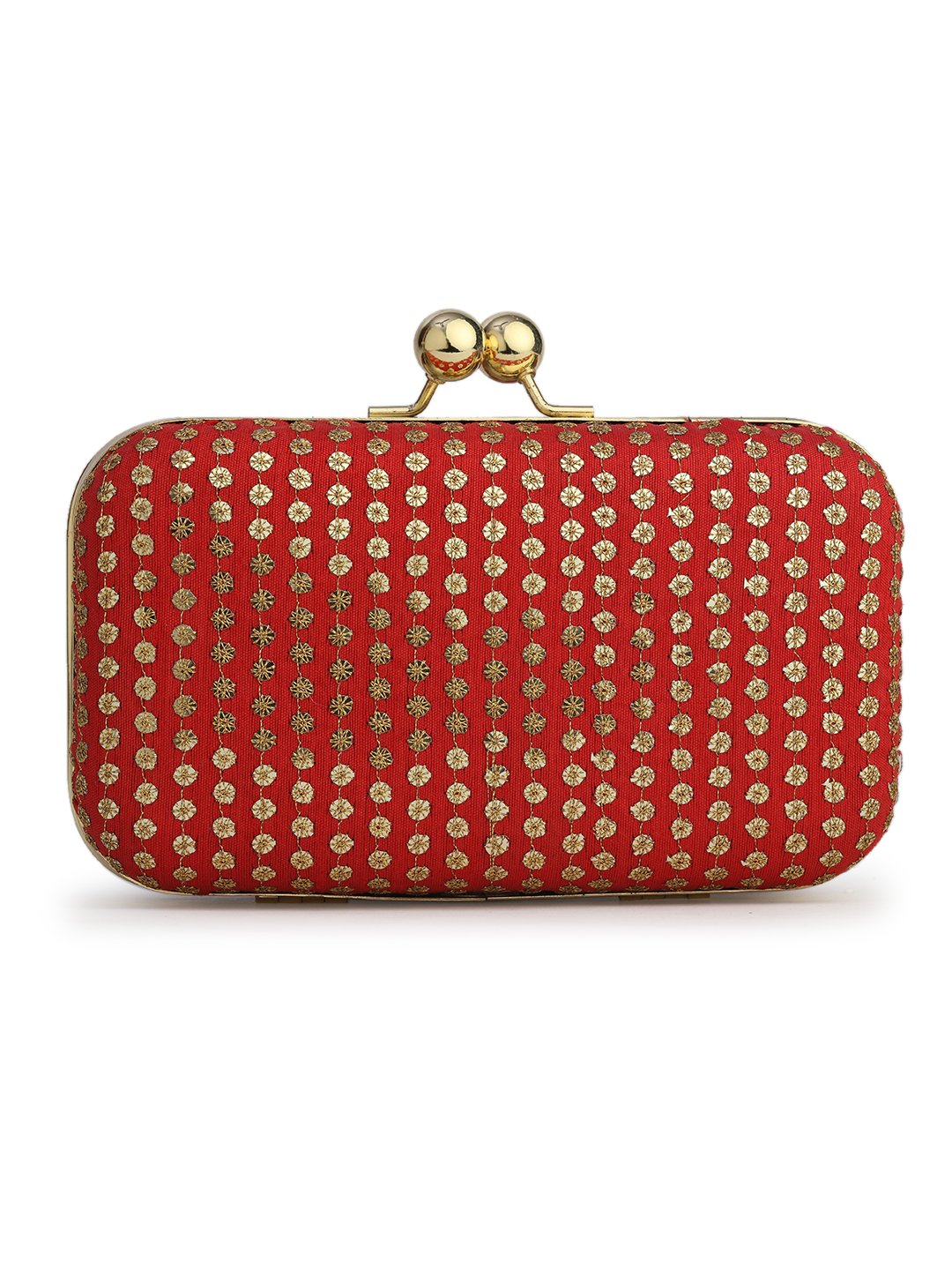 Red & Gold Embroidered Box Clutches For Girls and womens